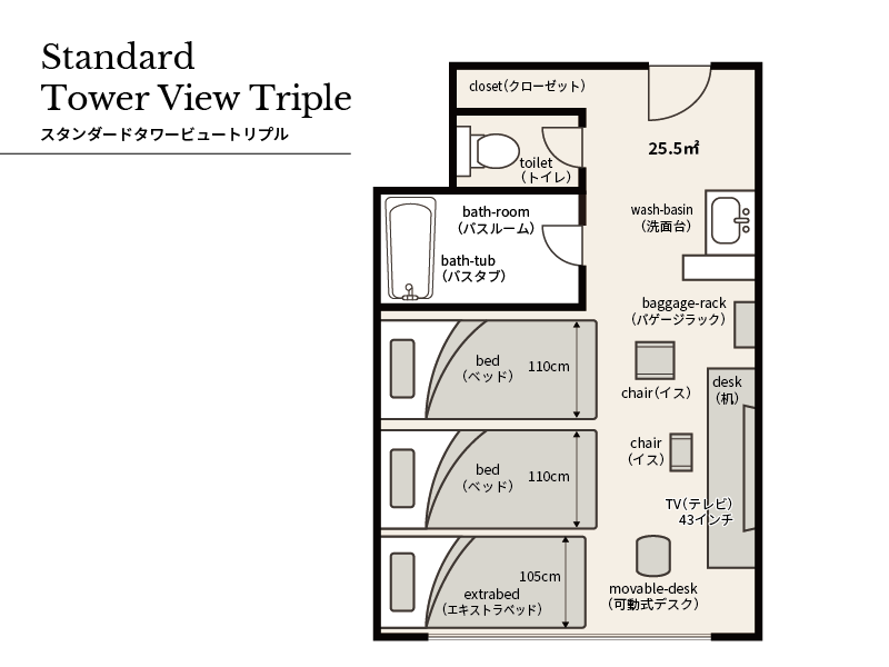 Please note that baby cribs can only be installed in certain room types. If you require one, please contact us in advance.
