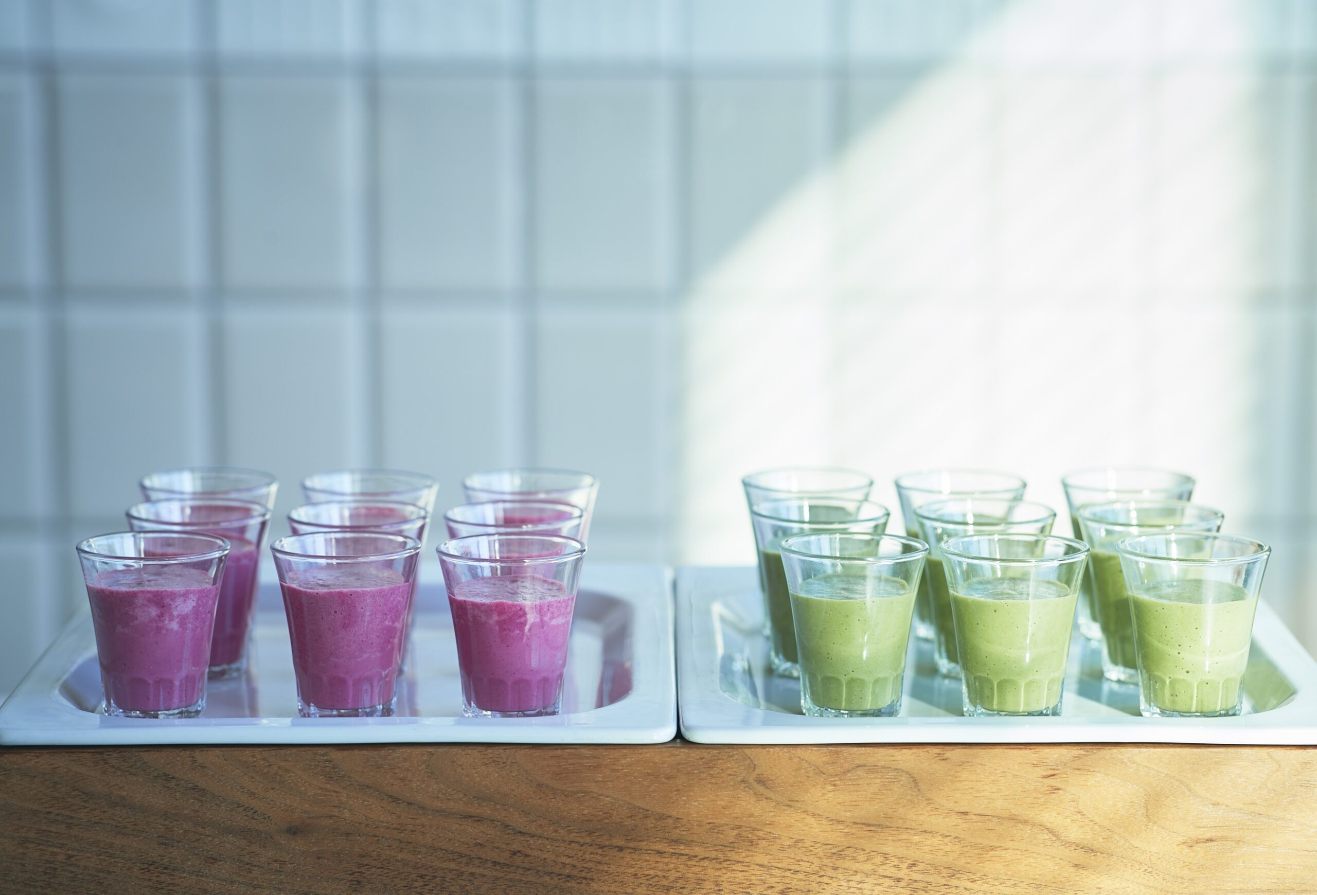 ▲「ビーツの甘酒スムージー」(写真左)と「小松菜の甘酒スムージー」(写真右)